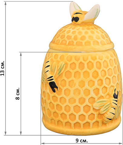 Elan Gallery Горшочек для меда «Пчелки на сотах»В данный момент этот товар отсутствует в продаже. Возможно, у нас найдется аналогичный или похожий товар здесь. Горшочек для меда «Пчелки на сотах» — красивый и удобный предмет для хранения и сервировки стола. Благодаря крышке с силиконовым ободком, банка герметично закрывается и мед не портится и не засахаривается. А рельефные стенки не позволят банке выскользнуть из рук. Большой объем горшочка для меда позволяет полностью перелить стандартную банку и избавиться от ненужных банок и емкостей на кухне. |