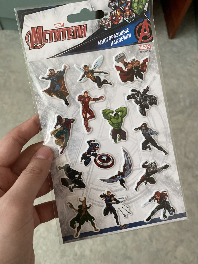 PrioritY Наклейки объёмные многоразовыеяркие картинки многоразовые хорошо клеются В данный момент этот товар отсутствует в продаже. Возможно, у нас найдется аналогичный или похожий товар здесь. Серия: Мстители Коллекция красочных многоразовых наклеек — отличный подарок для фанатов самой крутой франшизы «Marvel». Когда мир нуждается в защите, когда человечеству угрожает невиданная прежде угроза, супергерои объединяются и дают злодеям отпор! У каждого из них есть свои суперспособности и тайные слабости, но стоит прозвучать команде «Мстители, общий сбор!» — и ни один злодей не устоит! |