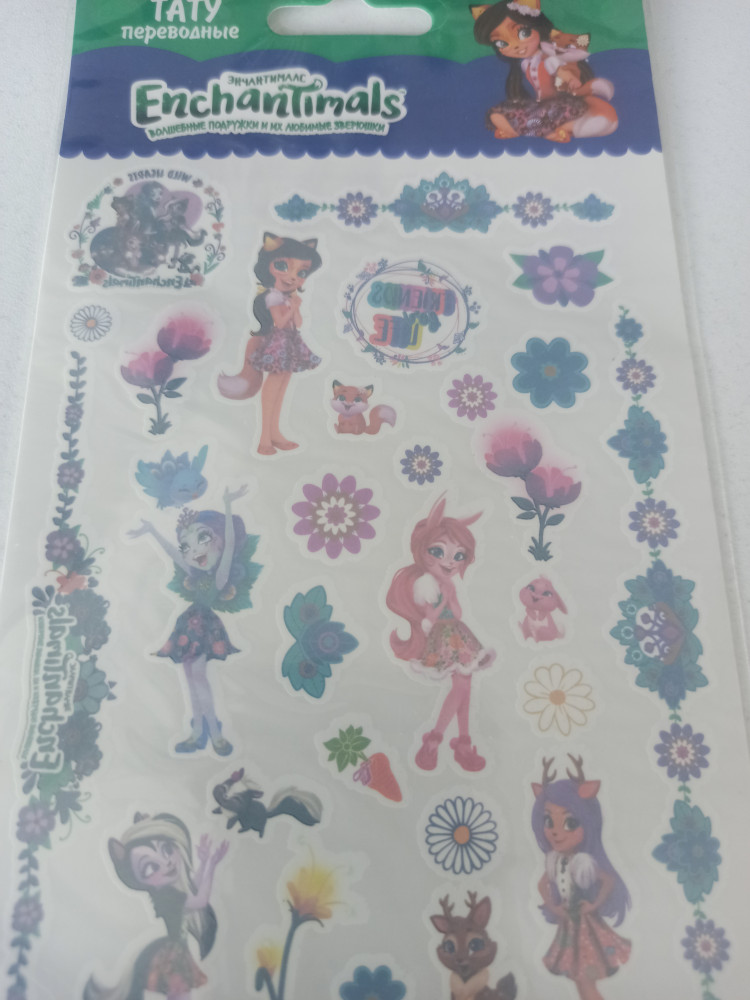 Серия: Enchantimals Тату — эффектное украшение для тела. Нанести тату очень просто — выбери картинку или узор, который тебе понравился, приложи его к коже и аккуратно сними верхний защитный слой. Временные тату смываются с кожи обычной водой — ты можешь менять свой образ так часто, как пожелаешь. |