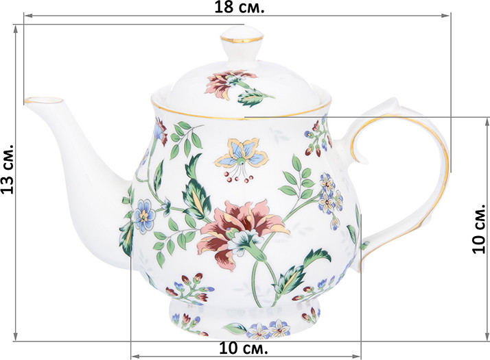 Изысканный заварочный чайник украсит сервировку стола к чаепитию. Благодаря красивому утонченному дизайну и качеству исполнения он станет хорошим подарком друзьям и близким. Не рекомендуется применять абразивные моющие средства.