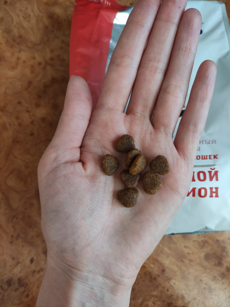 Корм может и хороший, но кошка плохо его ест, потому что гранулы очень крупные. В линейке Сириуса есть корм с небольшим размером гранул, вот его кошка ест хорошо.
