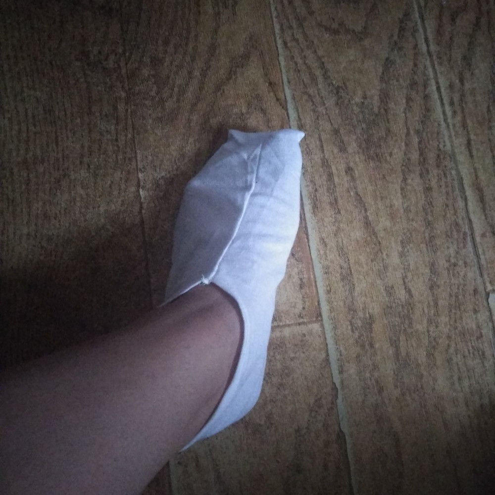 не знаю что это, но на носочки вообще не похоже, что-то бесформенное сшитое явно из остатков ткани. Ощущение мокрых ног, если одеть с кремом. Цена явно завышена, за хб тряпочку, из ткани для трусов, плохо скроеную и прошитую, с торчащими нитками.