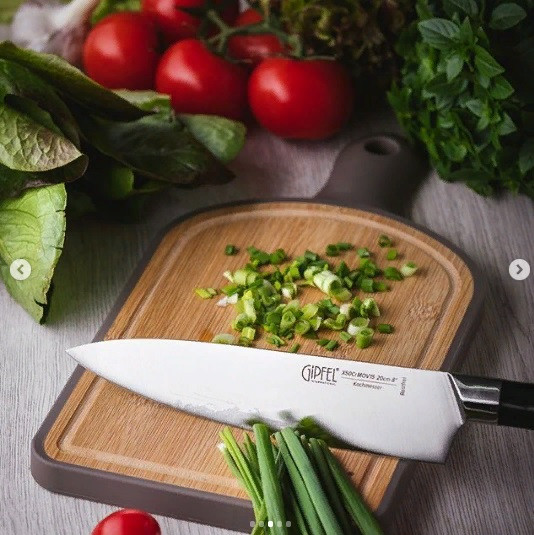 Доска предназначена для разделывания рыбы, мяса, нарезки овощей, фруктов, колбас, сыра и хлеба. Поверхность доски не тупит лезвия ножей при использовании. Доска прекрасно подойдет для ежедневного использования.
