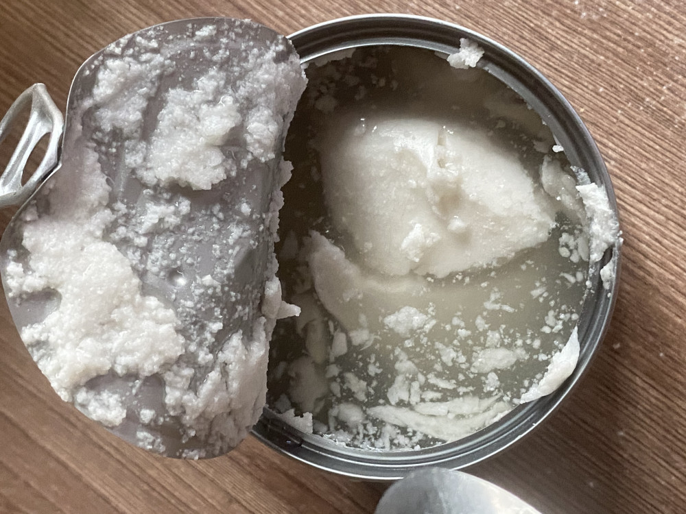 Полностью согласна с отзывом Сергея. Прикладываю фото открытой банки. Такое ощущение, что кокосовый урбеч развели с водой. При нагреве образовался серо-прозрачный жир... пить невозможно такое.