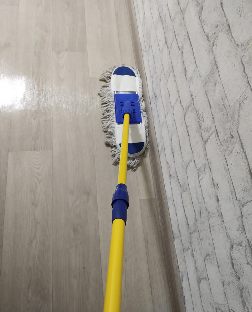 Относилась к тем людям, которые считают, что шваброй хорошо пол не помоешь. Ошибалась. Очень манёвренная, удобная и прекрасно моет. Легко снимается для полоскания (главное разобраться). Минус: телескопическая ручка, периодически, при давлении все таки складывается. А для тех у кого больные колени, швабра просто незаменимая помощница.