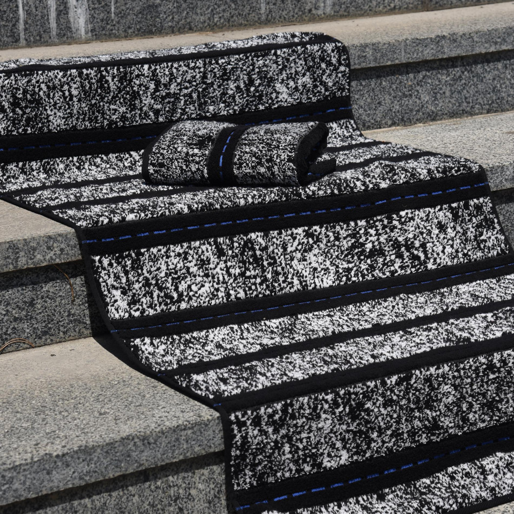 Серия: Stitch Импульсивный город задает свой ритм, создает свои правила: функциональность, универсальность, рационализм. При этом дизайн должен быть привлекательным и смелым. Полотенце Stitch предлагает подобие меланжевого эффекта на основе сочетания контрастных нитей — черной и белой. Полотно пересекают эффектные полосы с яркой синей строчкой. Такое цветовое сочетание — нейтральный фон и яркие детали — наглядно иллюстрирует урбанистический тренд. |