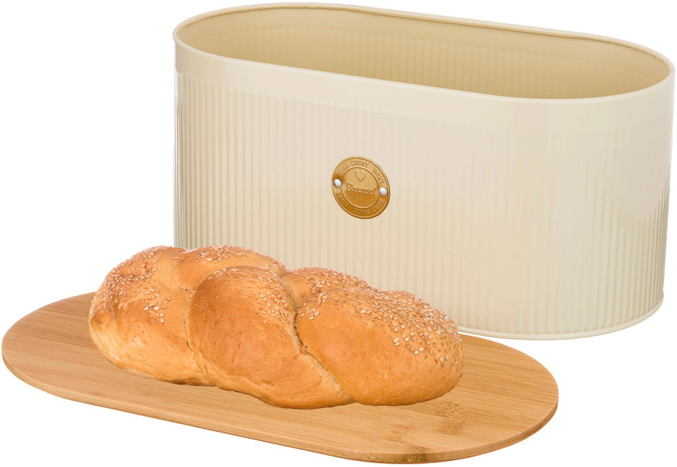 Хлебница не только вместительная, но и стильная, служит украшением интерьера. Дизайн хлебницы является частью коллекции, что позволит Вам создать единый стиль серии «Арктик». Хлебница неприхотлива в уходе, в ее конструкции используется сталь окрашенная и экологически чистый материал — бамбук. Порядок и уют на кухне с хлебницами ТМ «Agness».