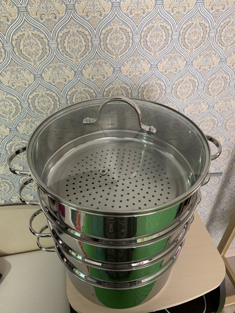 Добавлю отзыв после нескольких применений- красивая, качественная посуда, кастрюля может использоваться отдельно для приготовления большого объема еды( бешбармака). Но в процессе готовки очень греется ручка на крышке, на листах пароварки собирается влага, что не всегда допустимо. Надеюсь отзыв будет полезен