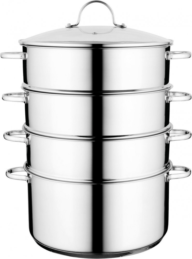 BergHOFF Кастрюля-пароварка 3-х яруснаяВ данный момент этот товар отсутствует в продаже. Возможно, у нас найдется аналогичный или похожий товар здесь. Благодаря большому диаметру и трём уровням, эта пароварка позволит готовить сразу для большой семьи. Если вам нужно меньше, просто снимите один или два уровня. Также вы можете использовать кастрюлю с крышкой как самостоятельную единицу. Посуда прочная, стильная и удобная в использовании. Подходит для любых типов плит, в том числе для индукционных. Технологичное 3-слойное дно обеспечивает равномерную передачу тепла. Все детали изготовлены из высококачественной нержавеющей стали, а элегантная матовая отделка придаст дополнительный стильный штрих. |