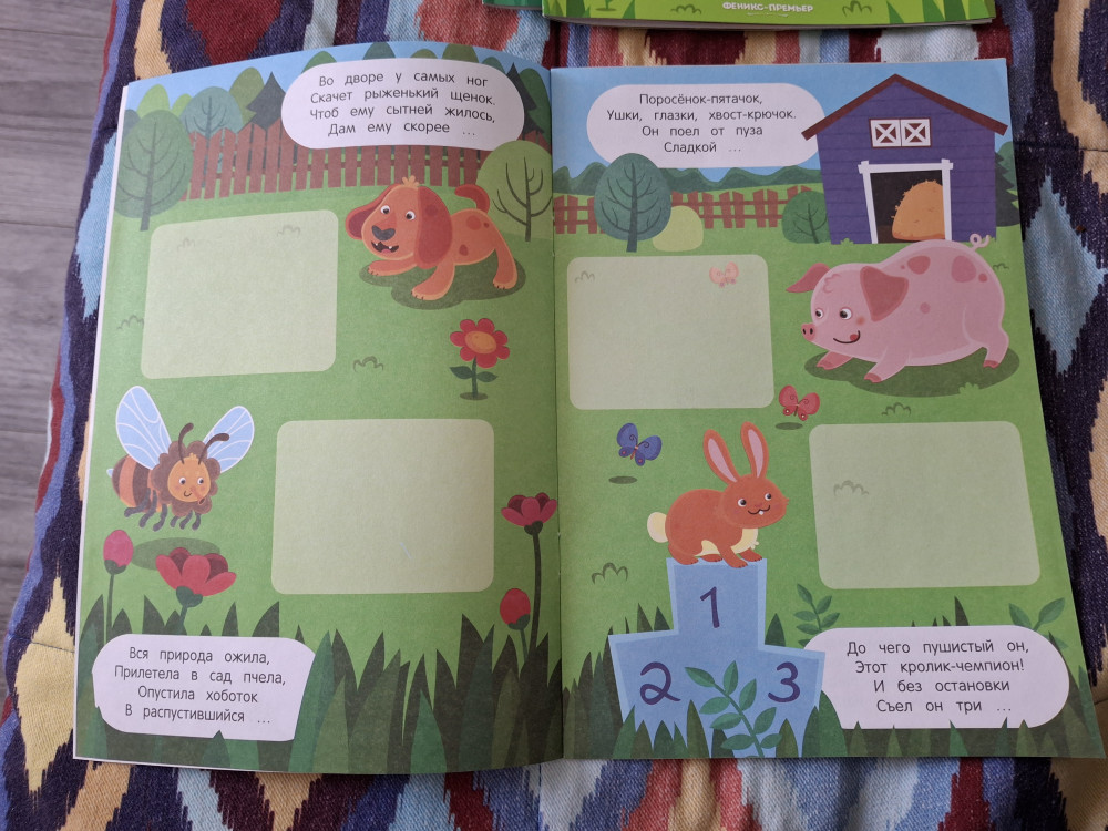И загадки, и яркие рисунки, и большие наклейки привели в восторг внучку. Советую для развития речи и мелкой моторики
