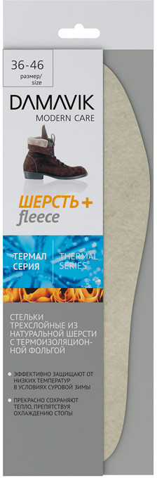 Damavik Стельки для обуви «Шерсть»тёплые толстые комфортные плотные В данный момент этот товар отсутствует в продаже. Возможно, у нас найдется аналогичный или похожий товар здесь. Серия: Термал Стельки эффективно защищают от низких температур в условиях суровой зимы не только за счет натуральной шерсти, но и за счет фольги, которая сохраняет тепло ноги и не пропускает холод и влагу со стороны подошвы. Прекрасно сохраняют тепло, препятствуя охлаждению стопы. Латексная пена, составляющая нижний слой, гарантирует ступням мягкость и удобство. Стельки точно заполняют днище обуви, противодействуют скольжению ступни и предотвращают возникновение мозолей. Уравновешивают давление на подошву, обеспечивая комфорт во время ходьбы. |