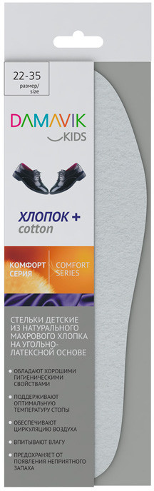 Damavik Стельки детские для обуви «Хлопок»качество комфорт рекомендовано В данный момент этот товар отсутствует в продаже. Возможно, у нас найдется аналогичный или похожий товар здесь. Серия: Комфорт Стельки обладают хорошими гигиеническими свойствами. Активированный уголь впитывает влагу и на длительное время предохраняет от появления неприятного запаха. Пригодны для носки на босую ногу. Занимают мало места в обуви. |
