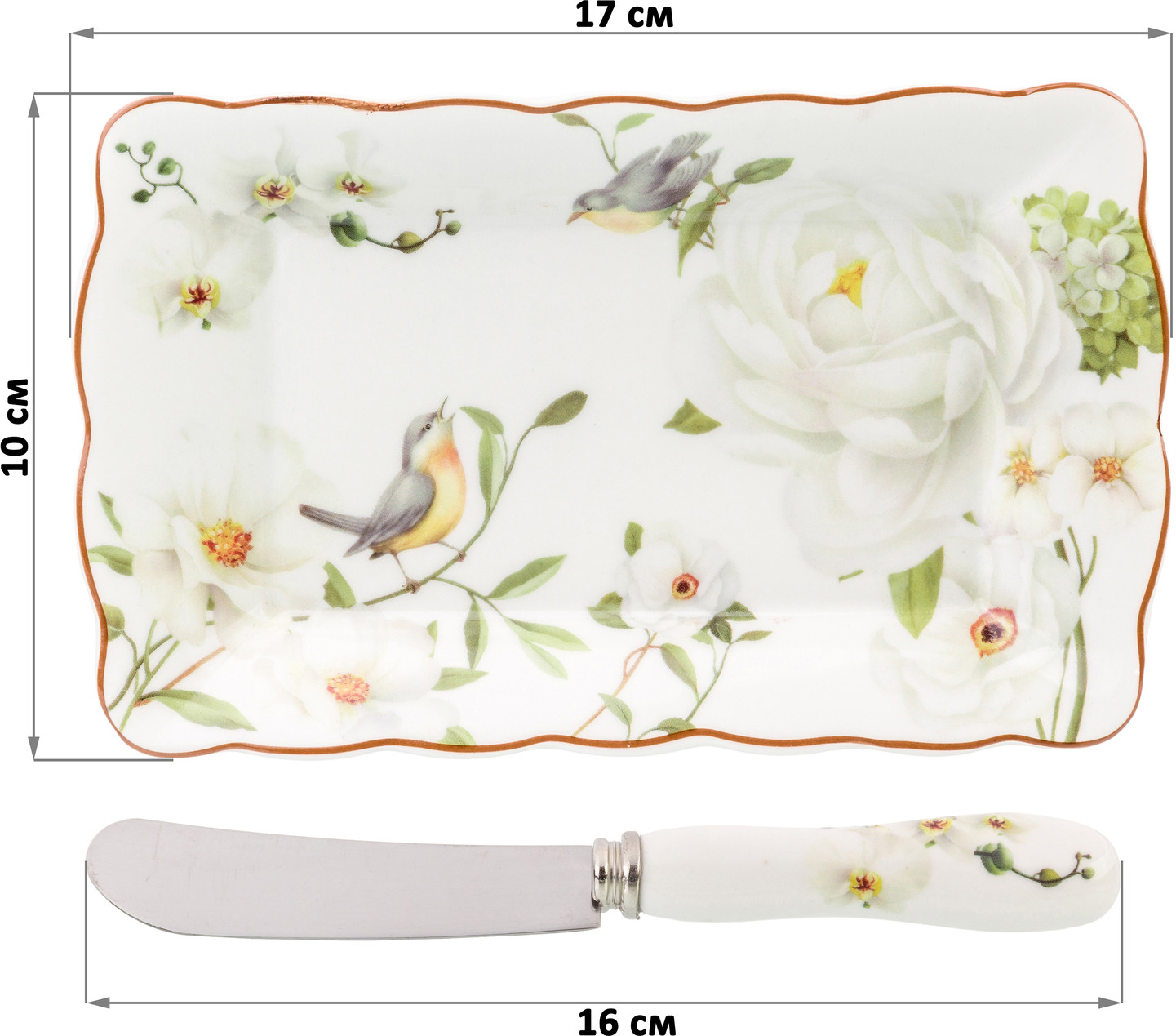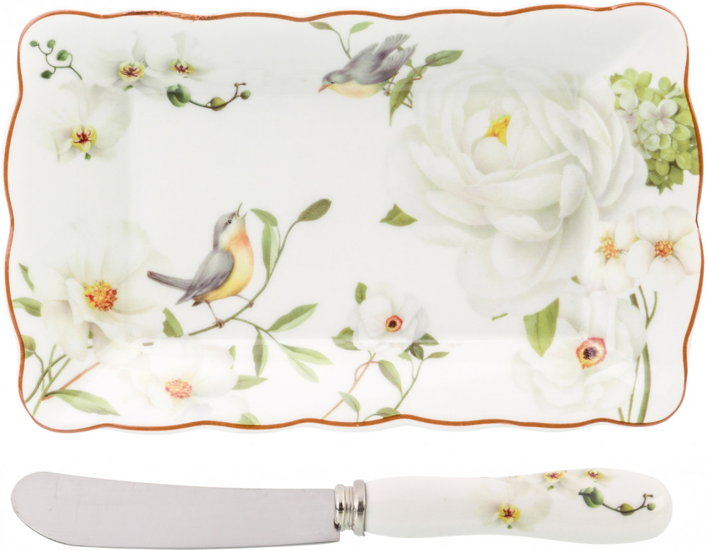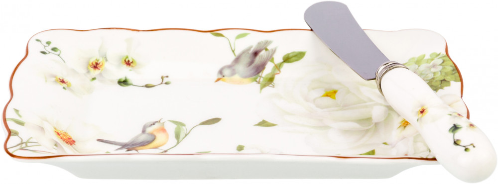 Отзывы «Тарелка под масло с ножом «Дикая роза на белом»»