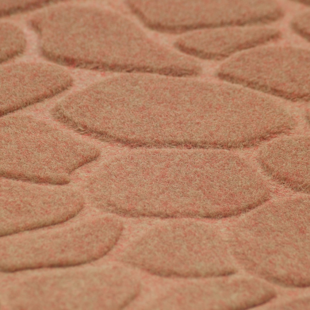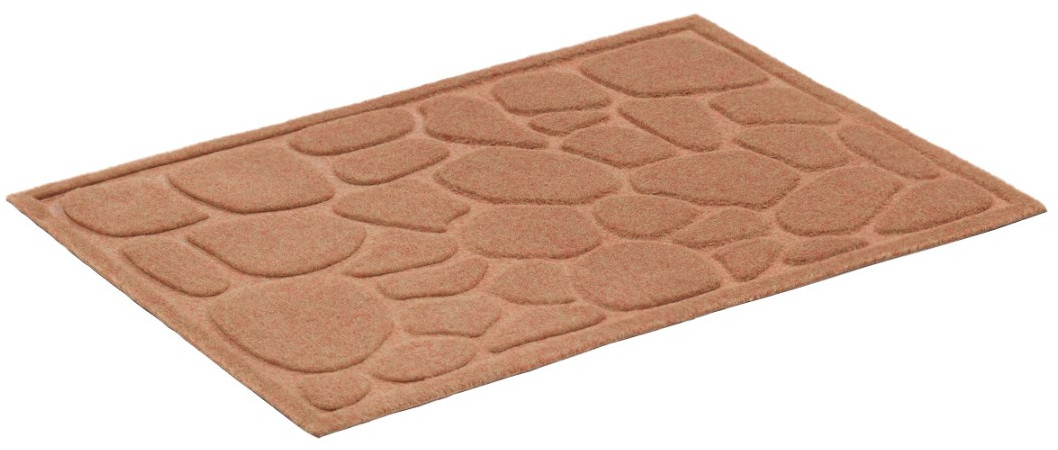 Коврик с резиновой основой хорошо прилегает к покрытию пола из кафеля и керамогранит. Не скользит. Нет неприятного запаха. Можно чистить коврик мокрой щеткой или пылесосить. Можно помыть под душем. Быстро сохнет.