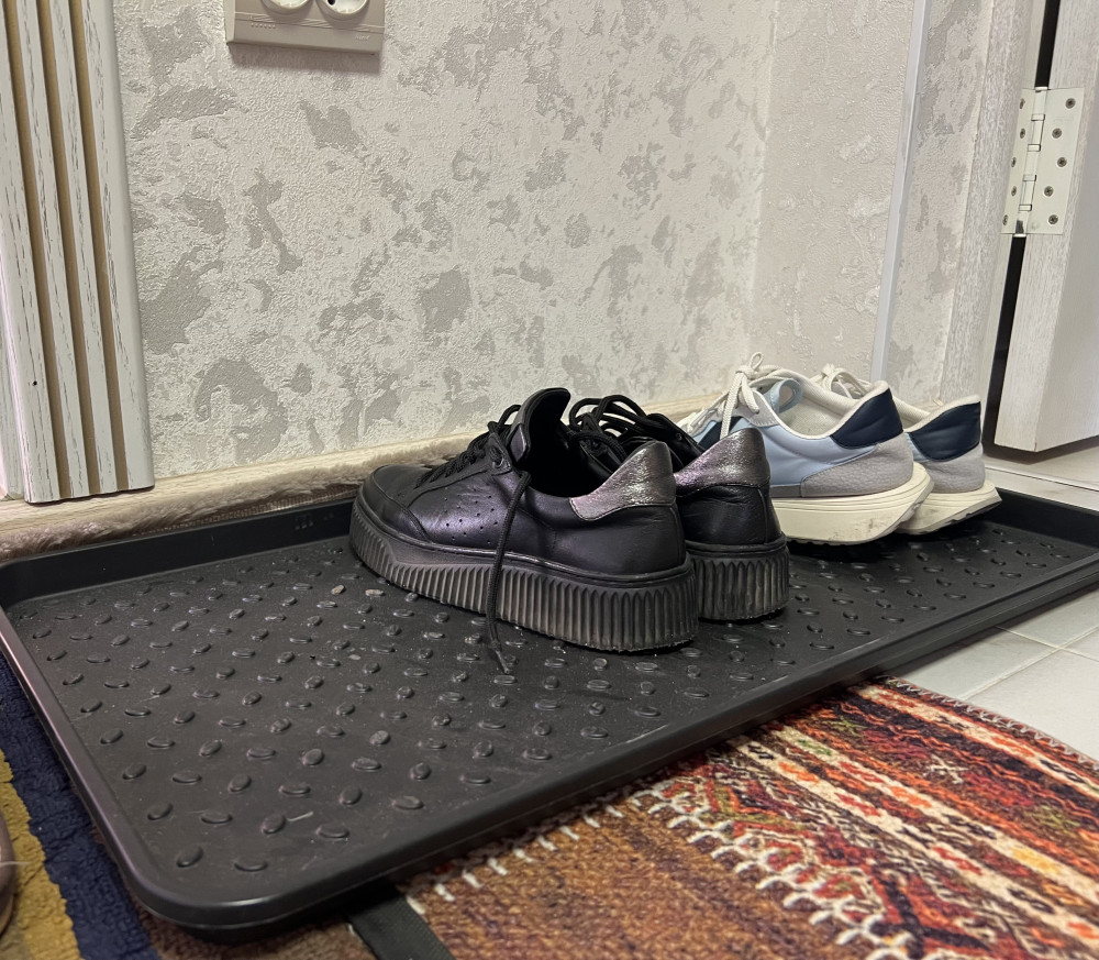 Очень удобный, особенно этой зимой избавили от луж на входе. Бортики не высокие, размер оптимальный для двух пар взрослой обуви! Спасибо!