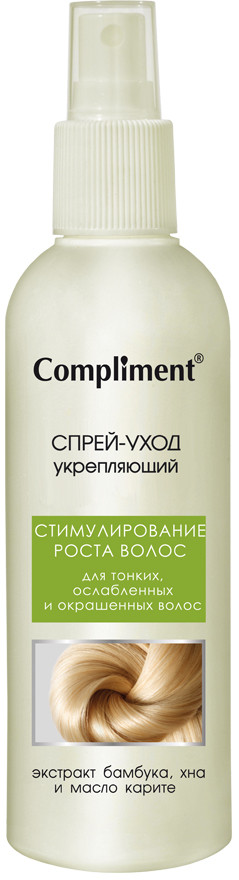 Compliment Спрей для волос укрепляющий+50 приятный запах смягчает волосы придаёт блеск не склеивает неэффективен