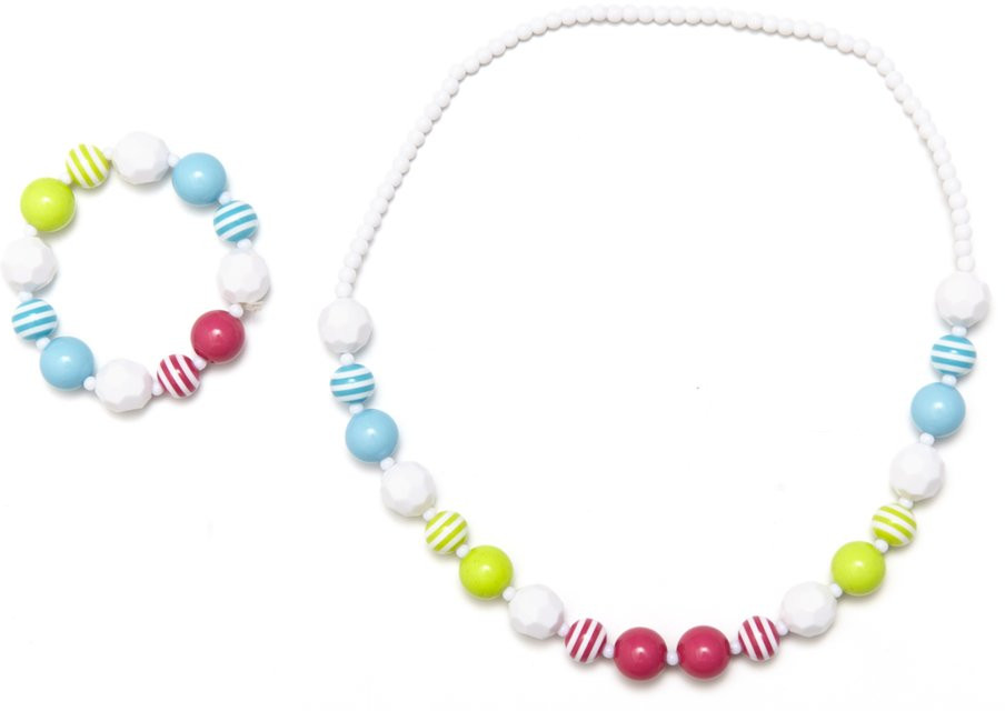 Стильный комплект аксессуаров из пластика: бусы и браслет. Бусины собраны на эластичную прозрачную леску. Набор подойдет к любому наряду маленькой принцессы! С данными аксессуарами девочка научится составлять идеальные образы с самого детства.