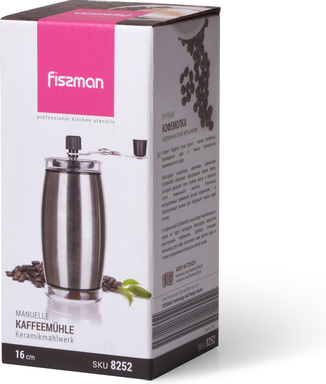 Fissman Кофемолка ручнаяВ данный момент этот товар отсутствует в продаже. Возможно, у нас найдется аналогичный или похожий товар здесь. Благодаря надежным жерновам кофемолка FISSMAN обеспечит однородный помол зерен, который раскроет всю глубину вкуса и аромата этого уникального напитка. Несколько движений ручкой кофемолки — и благоухающая основа для бодрящей чашки кофе готова. С кофемолкой FISSMAN помол будет идеальным, а зерна не будут выпадать благодаря закрытой конструкции кофемолки. Удобная стильная мельница для кофе прослужит вам долгие годы и станет украшением интерьера любой кухни. |