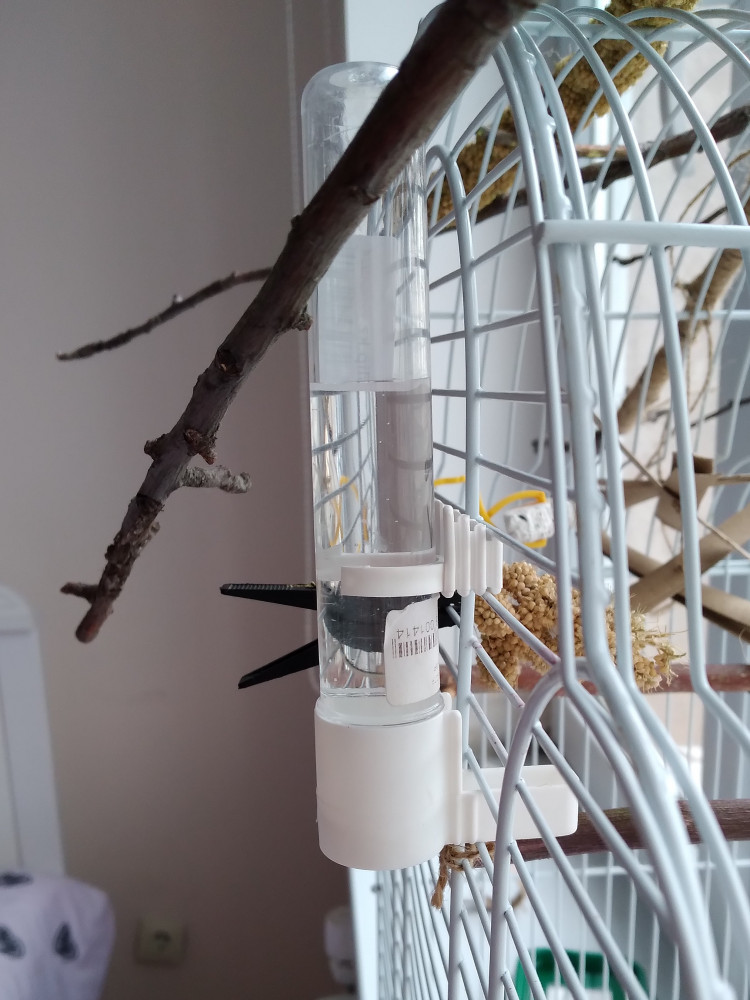 Поилка для птиц, но я купила для хомяка. Он хорошо из неё пьёт. Поилка очень удобная в использовании, легко моется и быстро и надёжно крепится к клетке