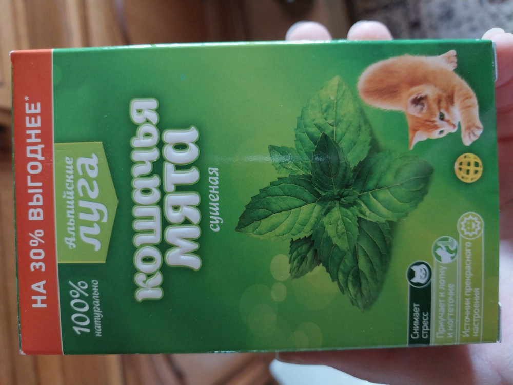 Альпийские луга Мята сушеная кошачья-20% нравится котам приятный запах подходит взрослым слабый эффект