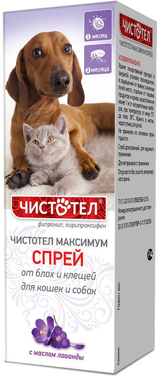 Чистотел Спрей для кошек и собак антипаразитарныйВ данный момент этот товар отсутствует в продаже. Возможно, у нас найдется аналогичный или похожий товар здесь. Спрей «Чистотел Максимум» применяют для уничтожения иксодовых и чесоточных клещей, блох, вшей, власоедов, паразитирующих на собаках и кошках, а также для предотвращения нападения эктопаразитов на животных. |
