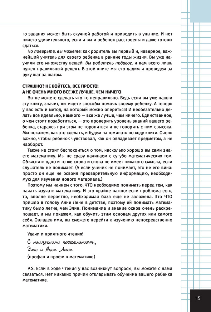 💳 Оплатить за товар можно при получении 🇰🇿 Есть бесплатная доставка по Казахстану от 1 дня 🎁 Копите бонусы с каждой покупки Серия: Психология Больше никакой зубрежки! Вы поможете ребенку достичь потрясающих результатов, всего лишь «отремонтировав» фундамент его знаний. Авторы опираются на проверенные методики обучения, ключевую роль в которых играет побуждение к активному мышлению и участию в поиске. Вам совсем необязательно хорошо разбираться в математике. Все, что нужно, — желание помочь ученику. В книге легко ориентироваться, все темы описаны понятным языком. |