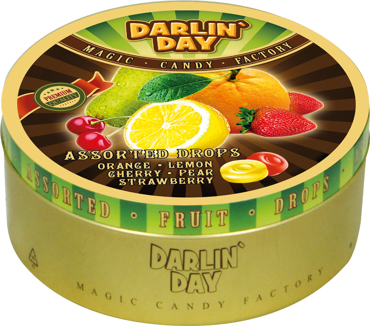 | Новый сладкий бренд. Фруктовая и молочная леденцовая карамель, а так же монпансье, упакованные в круглые металлические банки с ярким дизайном. Darlin'Day - натуральное сырье + традиции лучших кондитеров + уникальный романтичный дизайн = соблазнительное лакомство безупречного вкуса. |