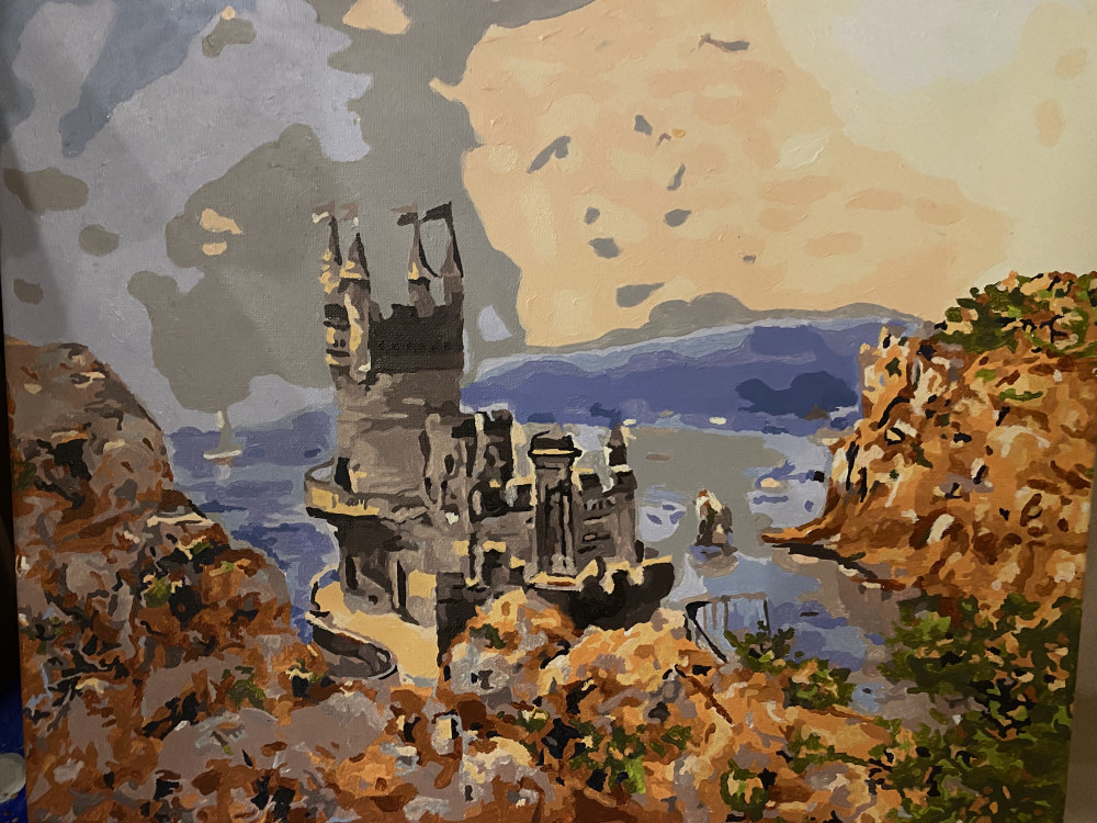 Как то перепутаны номера краски - 9 (очень темный серый) на самых светлых частях картины. Сестренка решила не заморачиваться и раскрашивала так, как было написано - в итоге получилось темное темное небо, будьте аккуратны с номерами) фото получившегося прикладываю