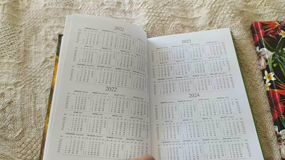 Удобный ежедневник, внутри много полезной информации и таблиц, красивая твёрдая обложка, практично.