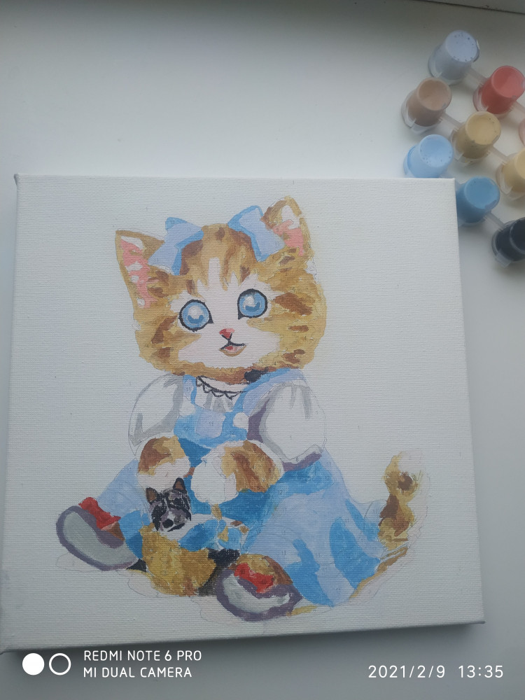 💳 Оплатить за товар можно при получении 🇰🇿 Есть бесплатная доставка по Казахстану от 1 дня 🎁 Копите бонусы с каждой покупки С помощью набора для творчества Молли можно нарисовать красками милую кошечку в голубом сарафане с бантами такого же цвета на голове. |