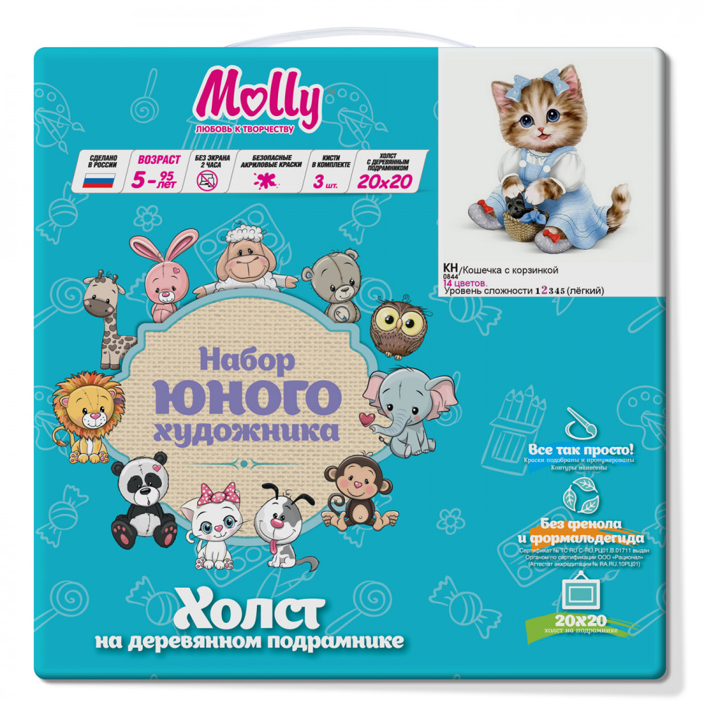 Molly Картина по номерам «Кошечка с корзинкой»+139 соответствие описанию хорошее качество для детей совместное раскрашивание