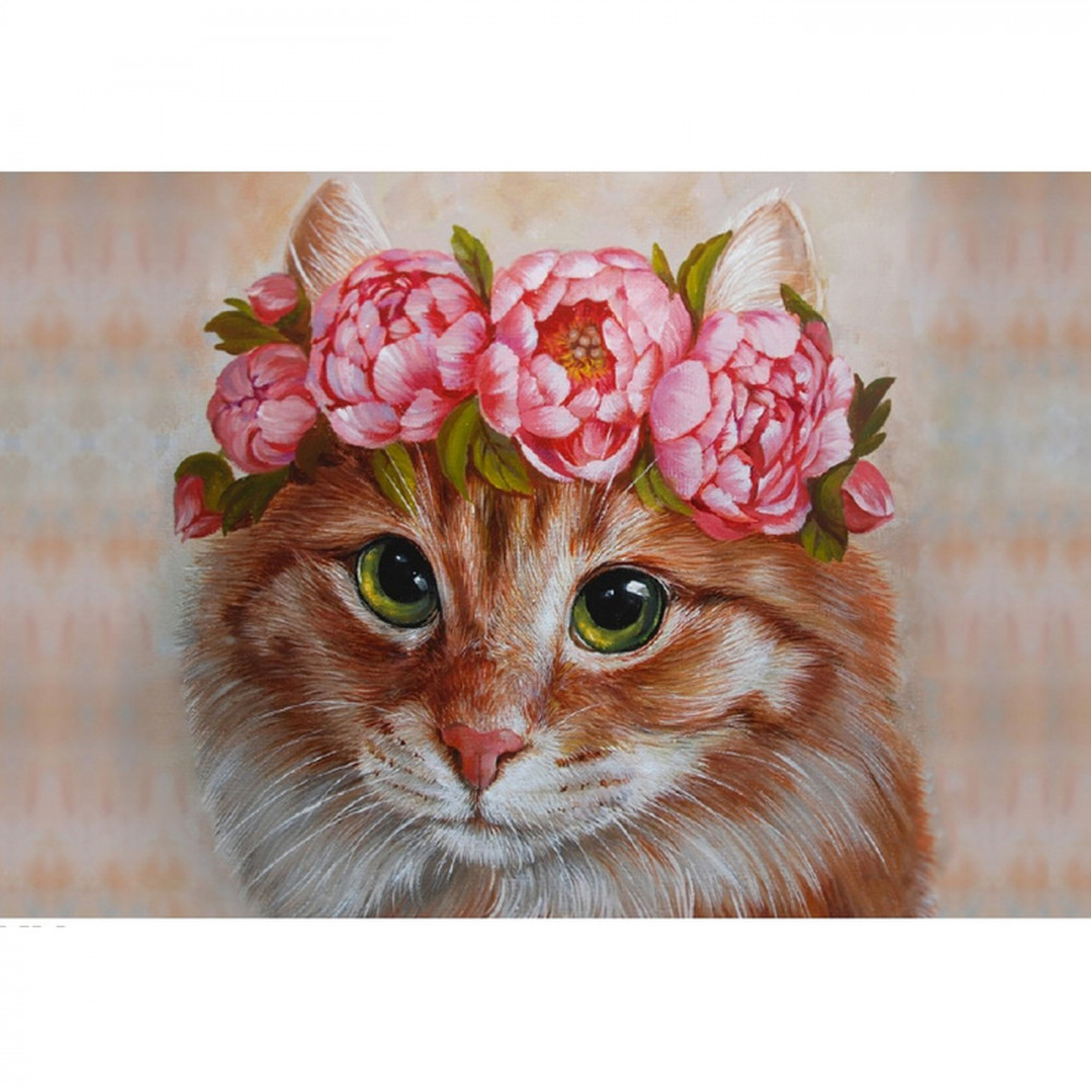 Взяв в руки кисти и краски и потратив пару часов, можно с головой погрузиться в увлекательное творчество и нарисовать прекрасную картину с портретом кошки с цветочным венком.