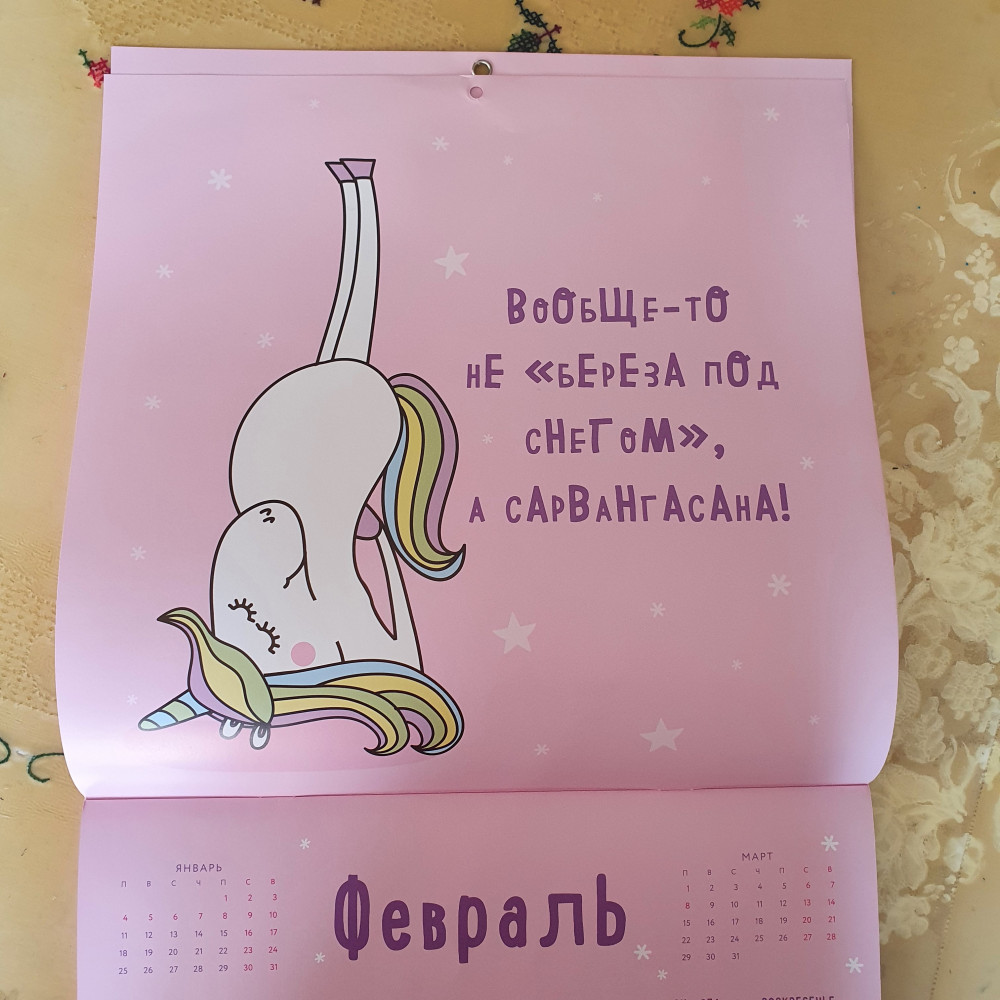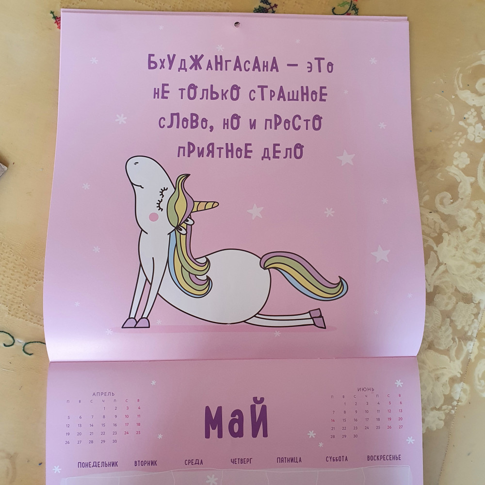 В данный момент этот товар отсутствует в продаже. Возможно, у нас найдется аналогичный или похожий товар здесь. Серия: Календари настенные 2021 Как провести год так, чтобы было и приятно, и полезно? В первую очередь, заняться йогой — она развивает гибкость и укрепляет дух. А еще нужно немного волшебных единорогов — потому что какой же год будет приятным, если в нем нет щепотки магии? Именно для этого и существует календарь с единорогами и йогой. Повесь его на стену, повторяй асаны и заряди свой год волшебством!