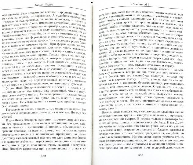 Интеллигентно и со вкусом оформленное издание. Понравилось как сделана обложка. Сама книга матовая, а буквы и портрет Антона Павловича глянцевые, такая разная фактурность очень хорошо смотрится. Бумага не идеально белая, но неплохого качества. По содержанию: пьесы "Чайка" и "Вишневый сад", остальное рассказы. Заказ был доставлен быстро, спасибо сайту за отличную работу