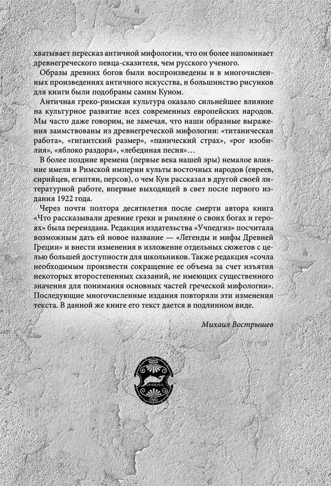 💳 Оплатить за товар можно при получении 🇰🇿 Есть бесплатная доставка по Казахстану 🎁 Копите бонусы с каждой покупки Серия: Подарочные издания. Иллюстрированная классика В сборник русского историка и педагога Николая Альбертовича Куна (1877–1940) вошел авторский текст его книги «Что рассказывали древние греки и римляне о своих богах и героях». В книге прекрасным русским языком пересказаны древнегреческие мифы и возникшие на их основе эпические поэмы «Илиада» и «Одиссея» Гомера, «Теогония» Гесиода, «Агронавтика» Аполлония Родосского, трагедии афинских драматургов V века до нашей эры Эсхила, Софокла, Еврипида и многие другие произведения древнегреческих и древнеримских авторов. Притом Куна так захватывает пересказ античной мифологии, что он более напоминает древнегреческого певца-сказителя, чем русского ученого. |