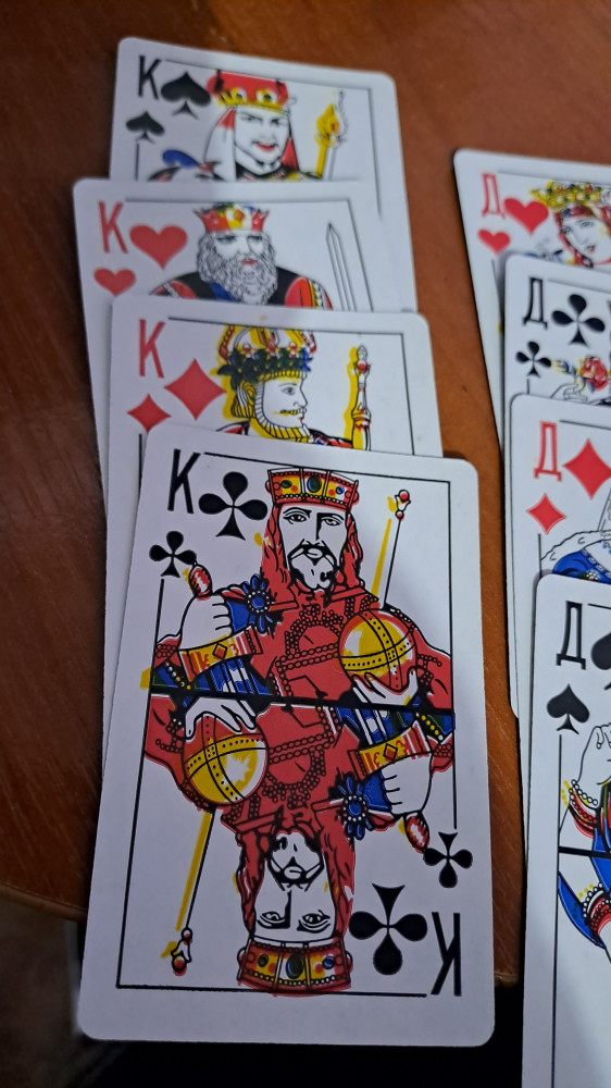 Все лица на картах с очень яркими красными губами) Выглядит смешно