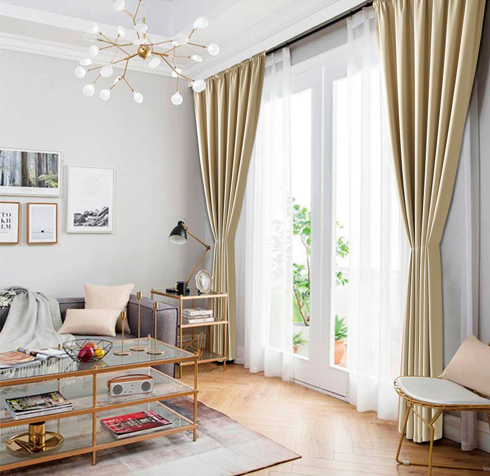 Шторы изготовлены из приятной на ощупь ткани — рогожка, обеспечивают 80% затемнение и имеют декоративную функцию.