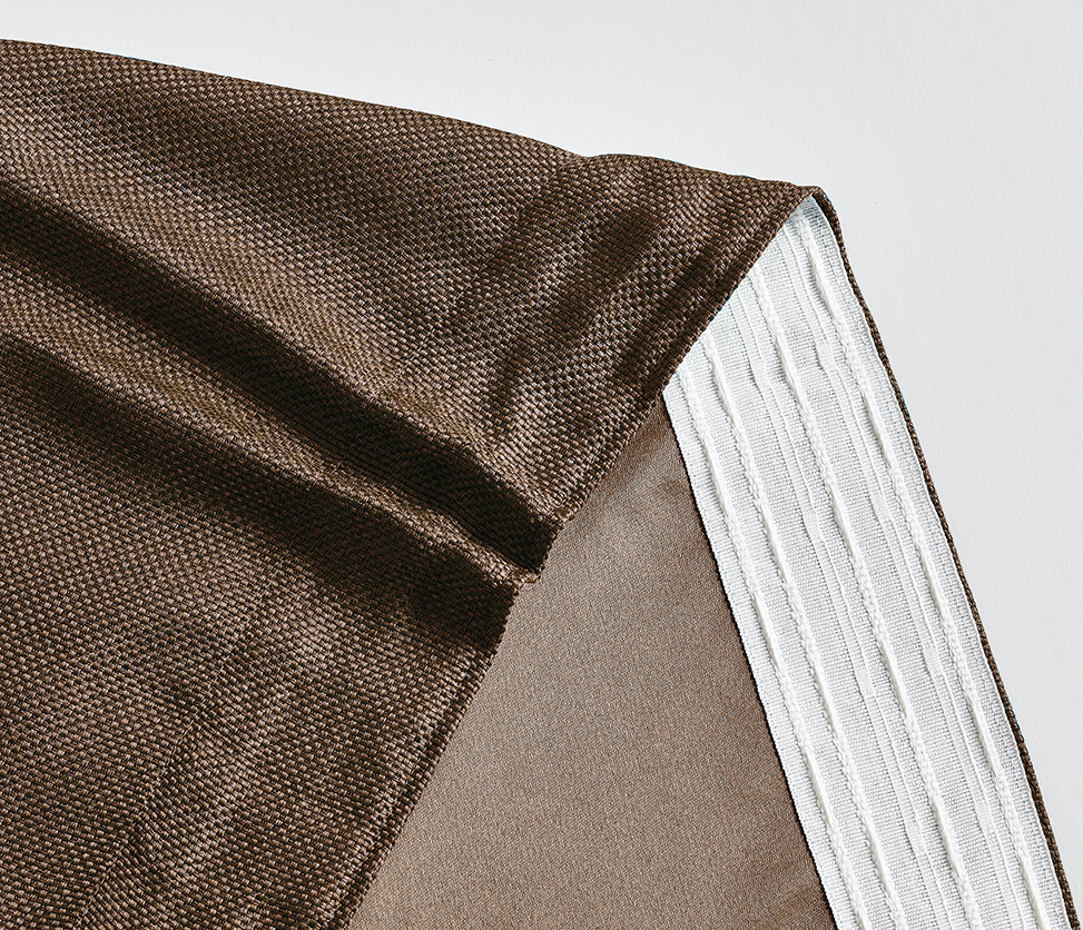Шторы соответствуют актуальному тренду на экологичность в интерьере. Ткань, имитирующая самотканную «рогожку», производится из синтетических нитей, при этом полностью воспроизводит фактуру натурального льна, с объемным переплетением и лёгким меланжевым эффектом за счет разных оттенков пряжи.