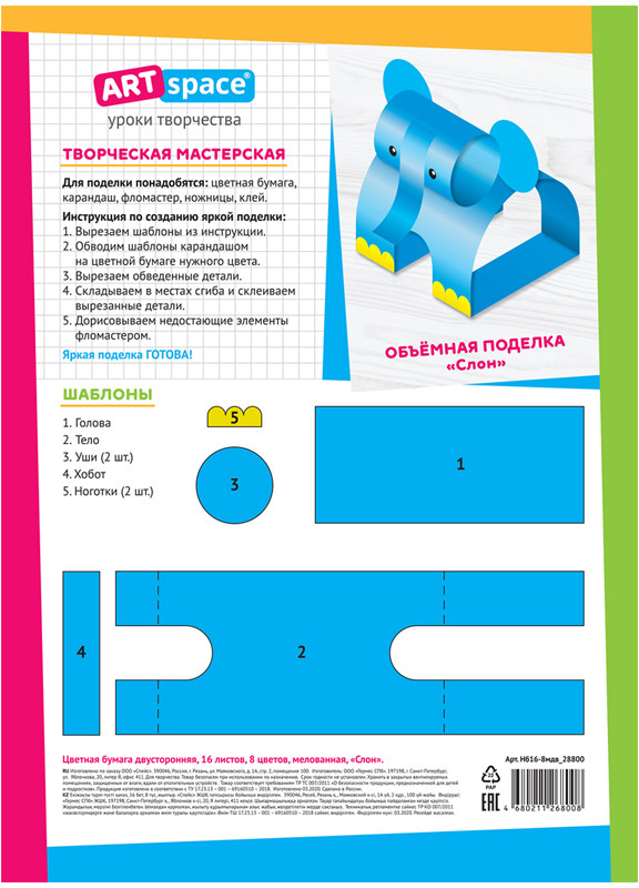 ArtSpace Набор цветной бумаги «Слон»+18