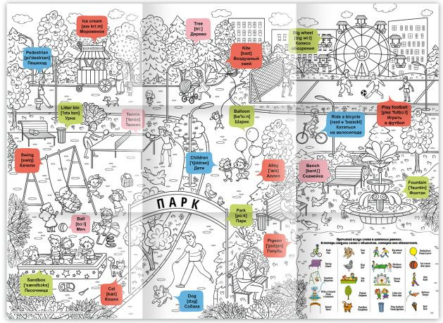 💳 Оплатить за товар можно при получении 🇰🇿 Есть бесплатная доставка по Казахстану от 1 дня 🎁 Копите бонусы с каждой покупки Серия: Раскрашивай, читай, запоминай Серия гигантских раскрасок-постеров-это уникальное сочетание развлекательного элемента с обучающим в интересном формате. Раскраска развивает у ребенка мелкую моторику и креативное мышление. Ключевые объекты раскраски имеют названия на русском и английском языках, а также приведена транскрипция для правильного произношения английского варианта. Ребенку предлагается выполнить увлекательное задание на соотношение объекта и его англоязычного названия, которое поможет закрепить в памяти новые английские слова и их произношение. Чем раньше ребенок начнёт изучать иностранный язык, тем быстрее он сможет свободно владеть им читать, разговаривать и писать. Размер в разложенном виде 80×58 см. |