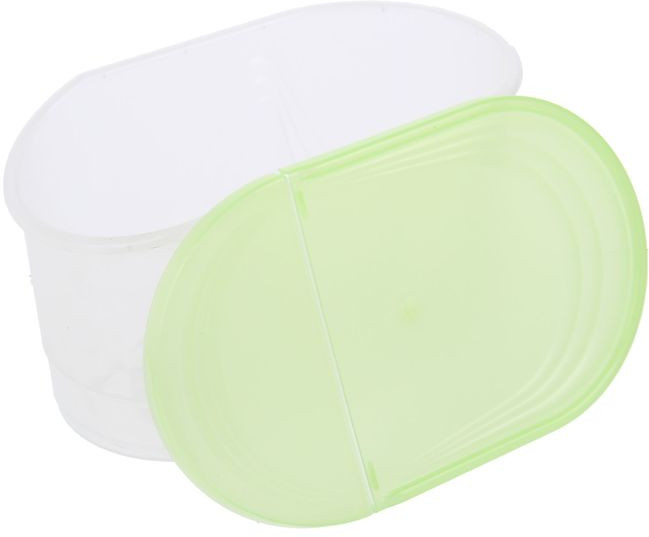Ёмкость хорошая. Крышка закрывается плотно. Хотелось бы такую же бОльшего размера. Не посмотрела на объём,на килограмм крупы как раз. 800 гр перловки для примера насыпала.