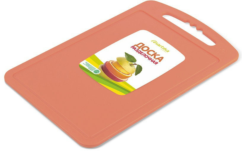 Из плюсов: цена, пластик не гнётся, запаха нет, маленький размер, если дома маленькая столешница. Удобно взять с собой на природу. Из минусов: выступающий бортик с одной стороны доски, скользит по столу и все же размер маловат, вот буквально по паре сантиметров не хватает.
