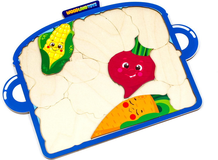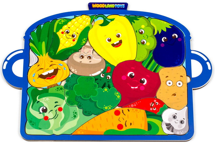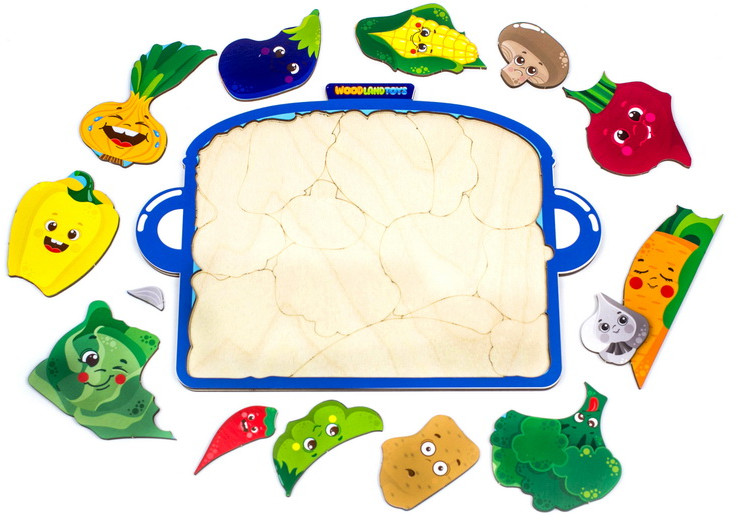 WoodLandToys Пазл-головоломка «Кастрюля с овощами»В данный момент этот товар отсутствует в продаже. Возможно, у нас найдется аналогичный или похожий товар здесь. Пазл-головоломка — развивающая игрушка для любознательных непосед, которая учит воспринимать связь между целой картинкой и ее частями. Игрушка состоит из деревянного планшета с рамкой для вкладывания и набора фигурных деталей-пазлов. Задача ребенка — используя для подсказки контуры на деревянной основе, из отдельных деталей с изображениями собрать единую композицию. Игры и занятия с пазлами развивают мышление, память, зрительное и тактильное восприятие, а также стимулируют мелкую моторику и координацию движения. |