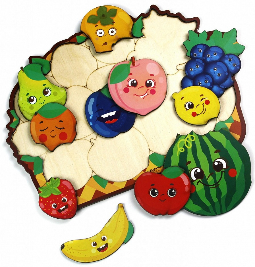 WoodLandToys Пазл-головоломка «Фруктики»В данный момент этот товар отсутствует в продаже. Возможно, у нас найдется аналогичный или похожий товар здесь. Пазл-головоломка — развивающая игрушка для любознательных непосед, которая учит воспринимать связь между целой картинкой и ее частями. Игрушка состоит из деревянного планшета с рамкой для вкладывания и набора фигурных деталей-пазлов. Задача ребенка — используя для подсказки контуры на деревянной основе, из отдельных деталей с изображениями собрать единую композицию. Игры и занятия с пазлами развивают мышление, память, зрительное и тактильное восприятие, а также стимулируют мелкую моторику и координацию движения. |
