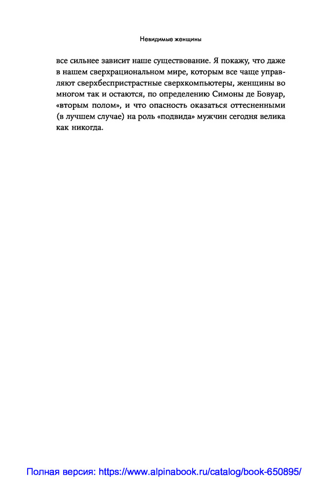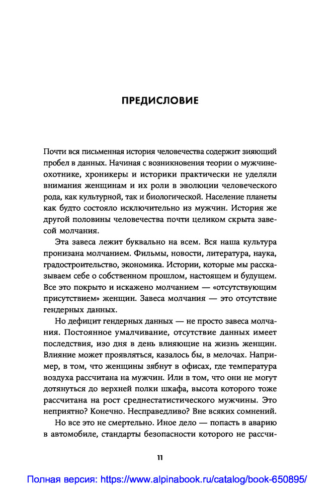 Это книга, которую должна прочитать каждая. Автор с поразительной ясностью показывает, как мир, в котором мы живём — от медицины до городской инфраструктуры — построен по «мужскому шаблону», а женщины в нём часто просто не учитываются.