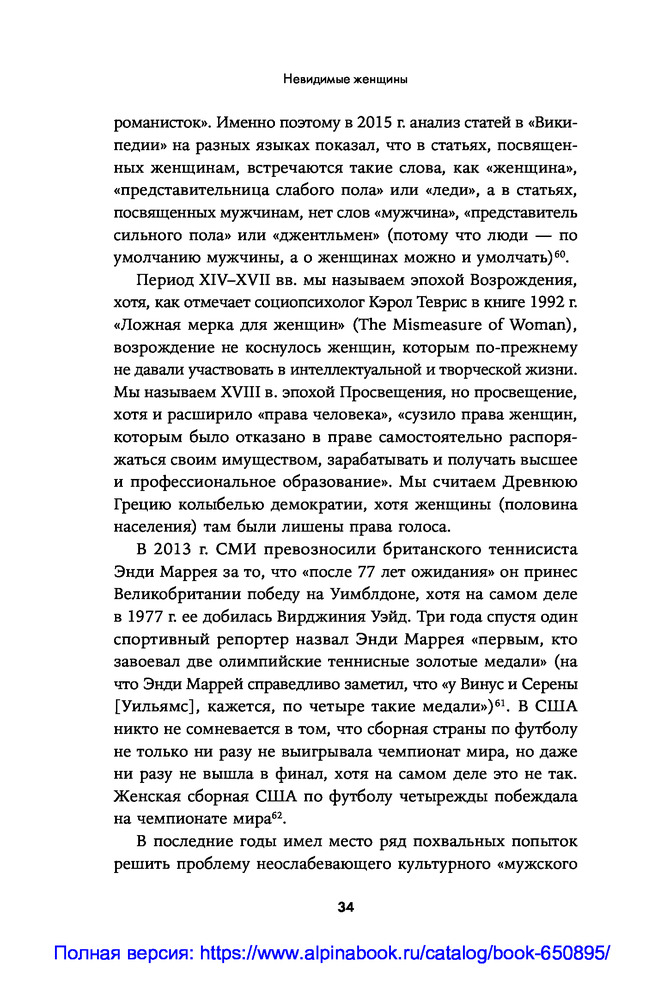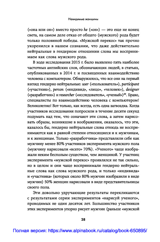 Мы живём в мире, в котором зачастую при сборе данных не делают разбивку по полу. А в этой книге собраны те крупицы статистики, которые мы можем использовать.
