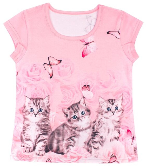 Милая прелестная футболка! Хорошего качества. Аккуратно сшита. Наша малышка очень обрадовалась котикам.