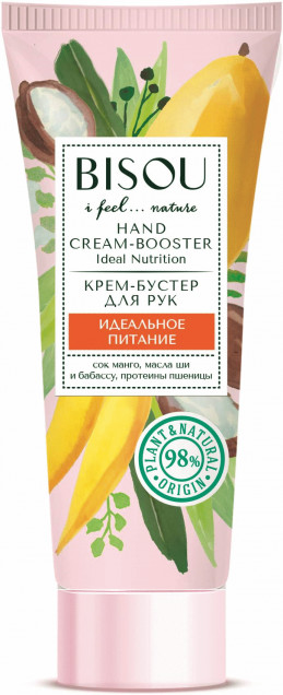 Bisou Крем-бустер для рук «Идеальное Питание»В данный момент этот товар отсутствует в продаже. Возможно, у нас найдется аналогичный или похожий товар здесь. Крем для рук с гидролатами нектарина и ванили, маслами абрикоса и семян клубники, аргинином и витамином Е. Быстро возвращает нежность, мягкость и молодость, обеспечивая ухоженный вид. |