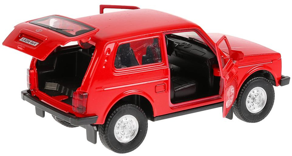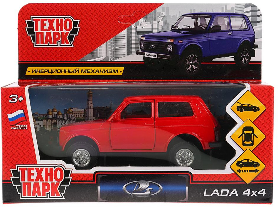 Металлическая машинка «Джип Lada 4x4» от торговой марки «Технопарк» представляет собой точную уменьшенную лицензионную копию своего оригинального прототипа, исполненную в красном цвете. Дети смогут рассмотреть все внешние особенности инерционной модели, открыть двери и багажник и весело проведут время, запуская ее по прямой траектории.