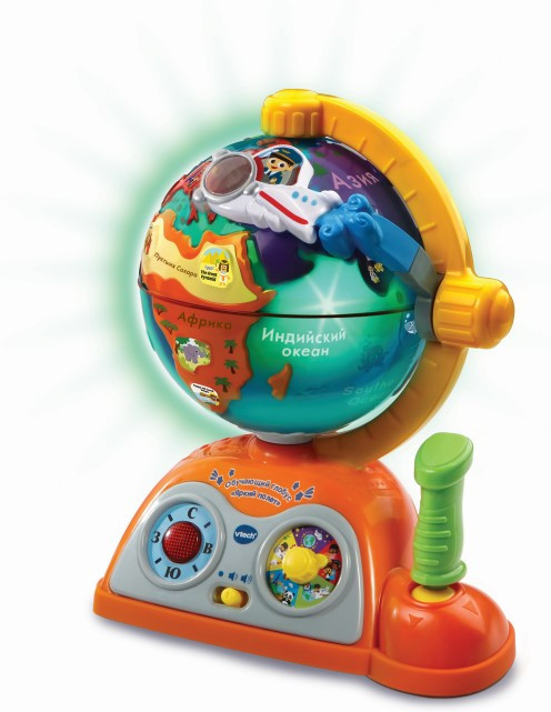 Откройте мир с помощью Обучающего глобуса «Яркий полет» от VTech. Маленькие исследователи берутся за джойстик, чтобы управлять самолетиком, облететь весь земной шар, исследовать разные страны, познакомится с новыми людьми, посетить достопримечательности и узнать животных, обитающих на разных континентах.